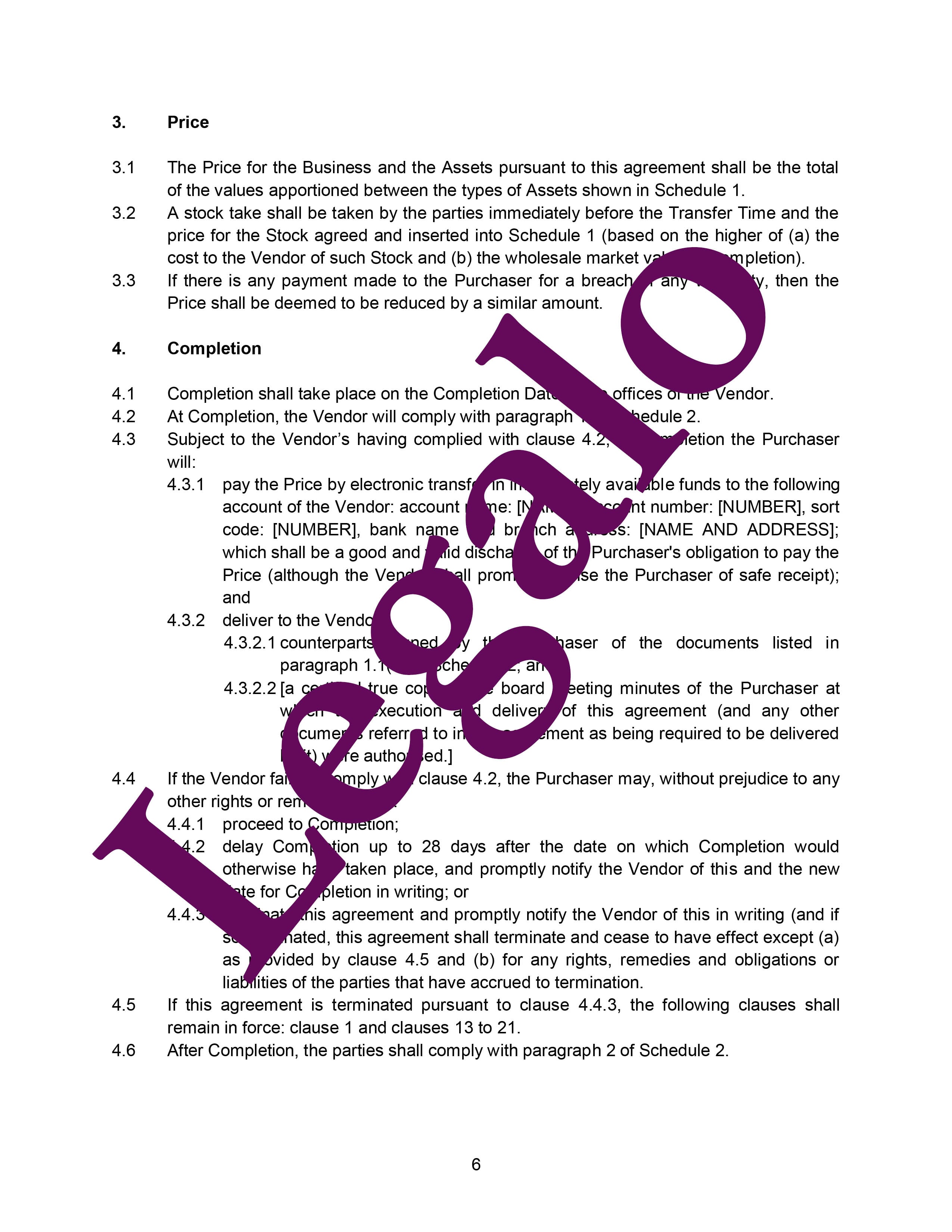 You can easily edit the Business Transfer Agreement template to fit your specific needs. It comes with full guidance notes which you can read here. We include a copy with the download. You can then easily refer to them when you are drafting your contract.