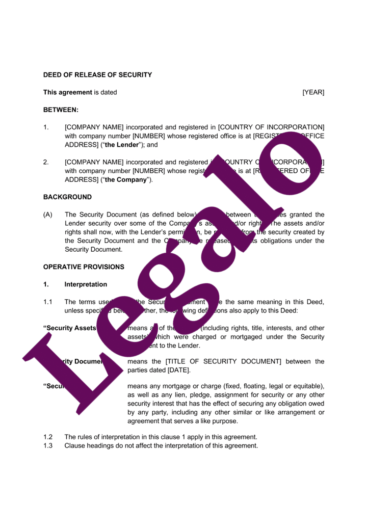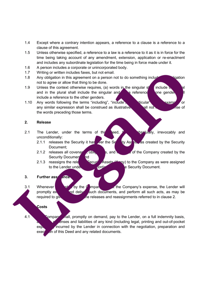 Our Deed of Release of Security template: