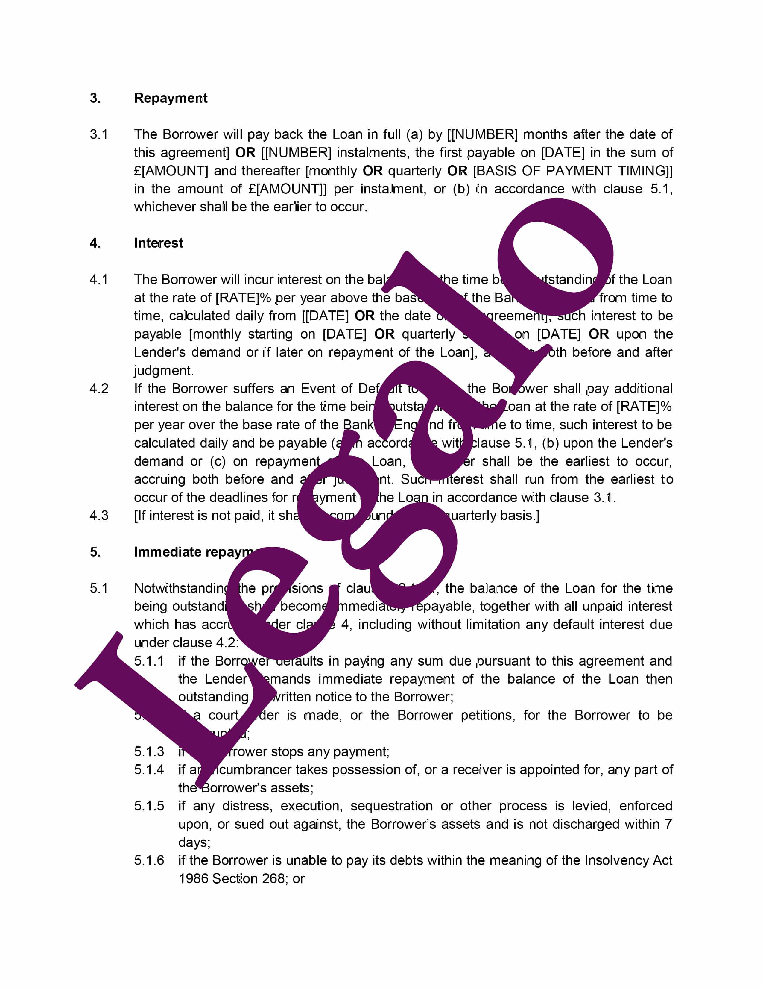 With this template, clause 4 (charging interest on the loan) can be changed, so that you don’t charge interest. This is as noted below: