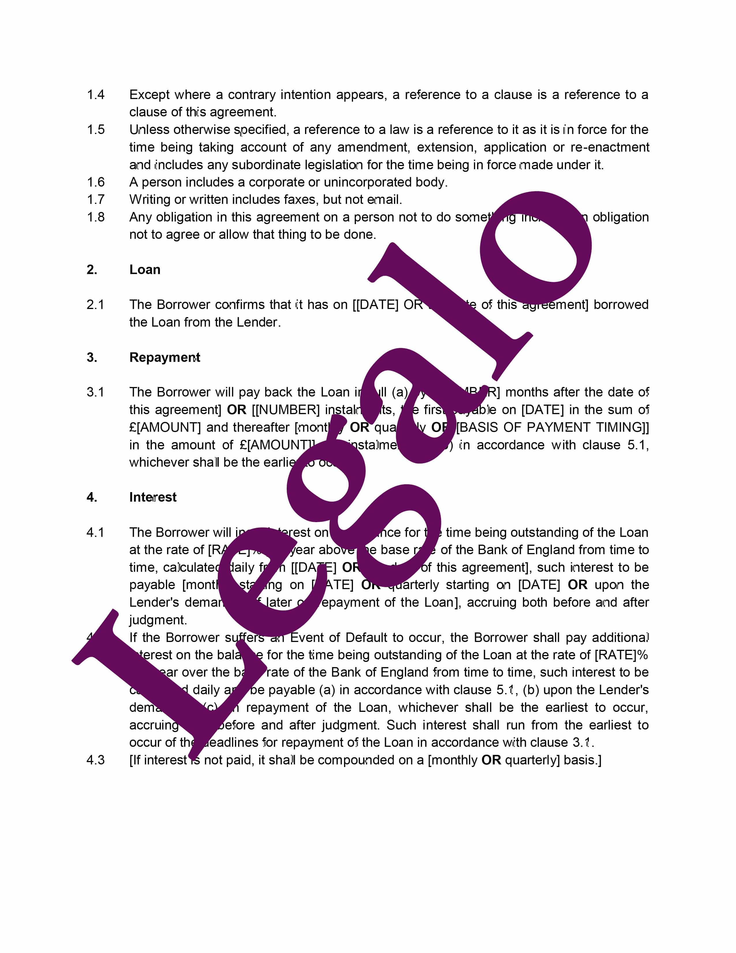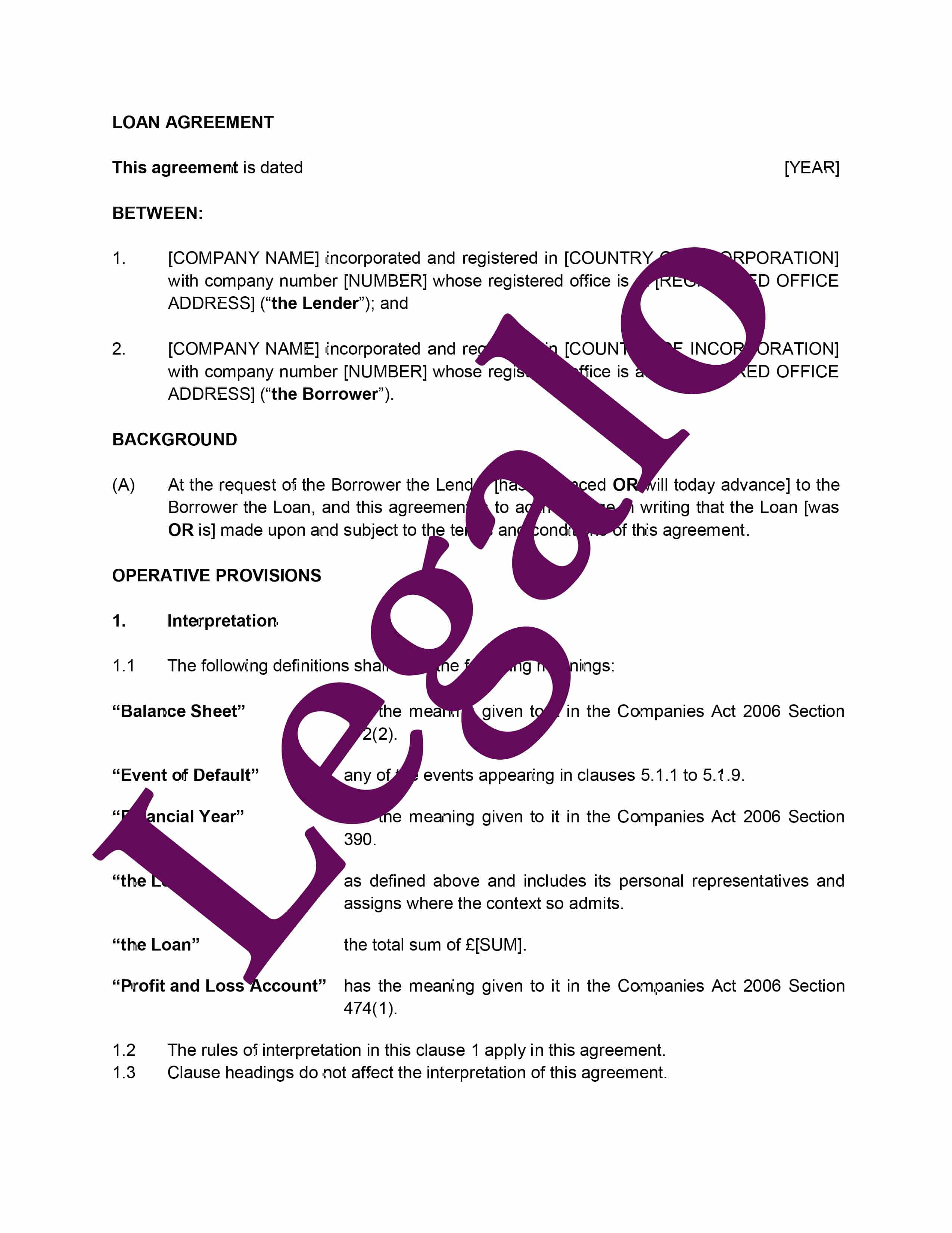Our Loan Agreement template: