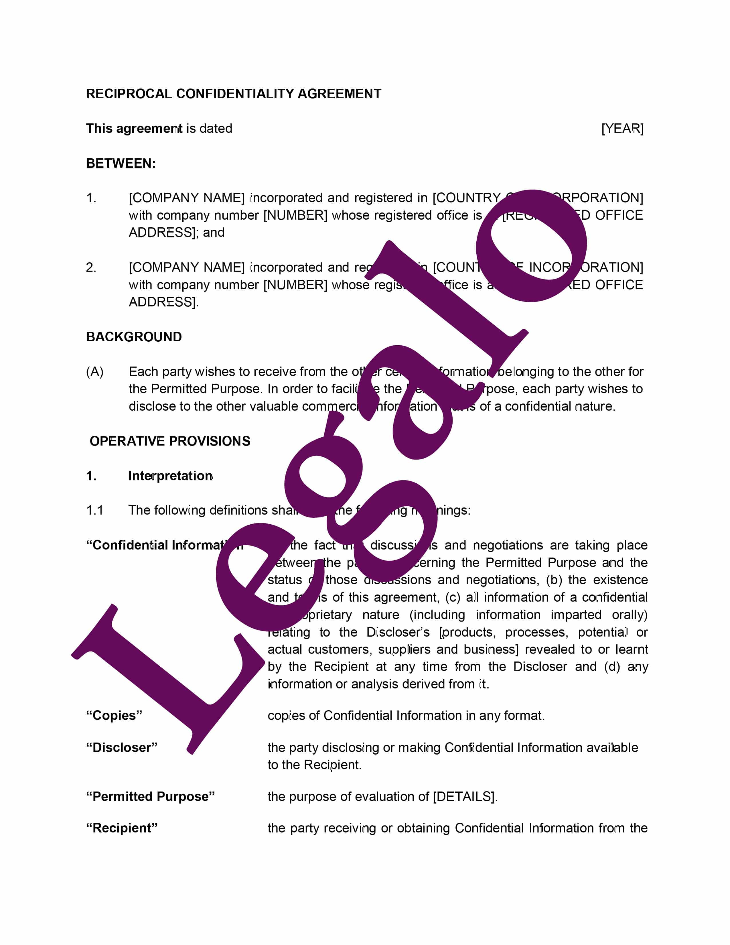 - find you need any help in completing your reciprocal confidentiality agreement, or