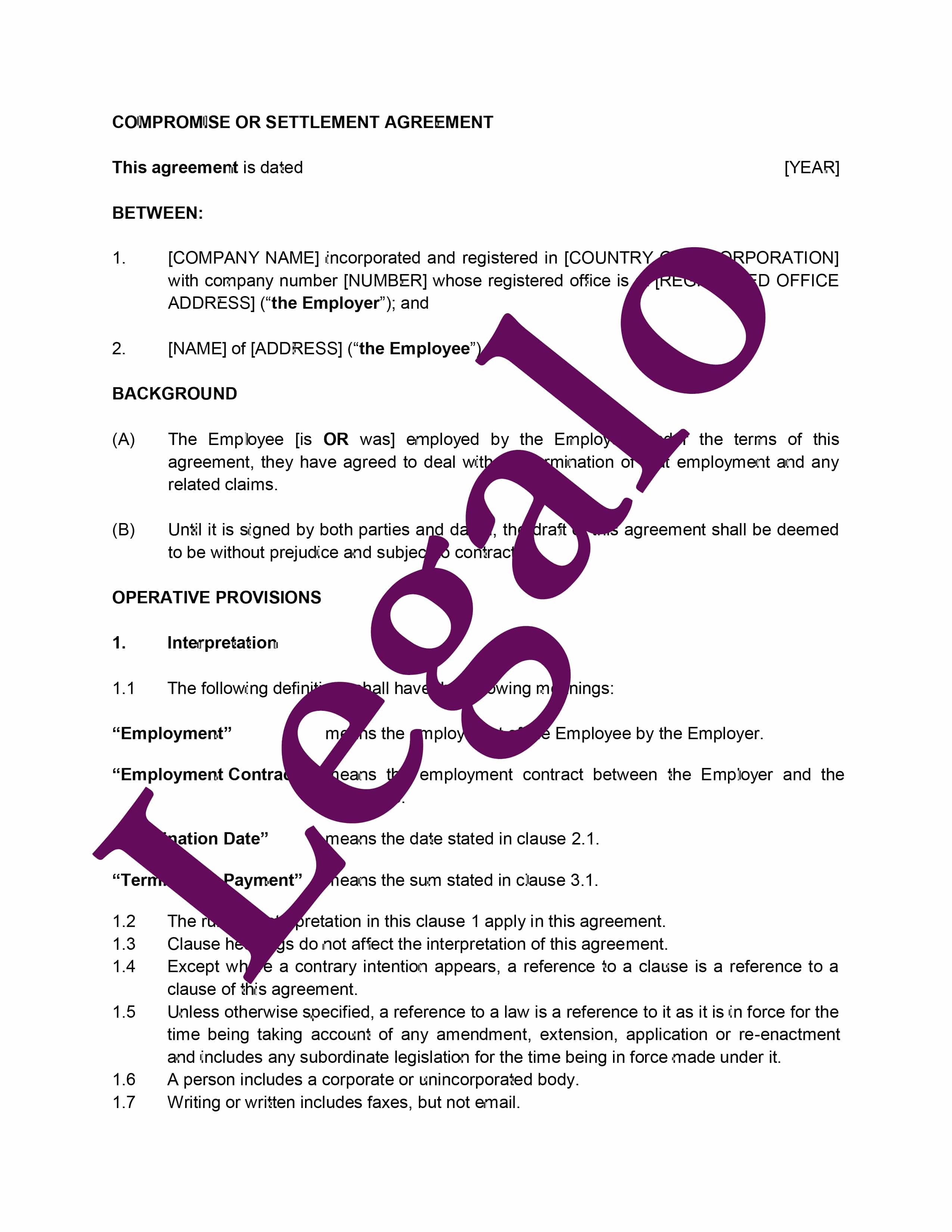 Using our Compromise Agreement template