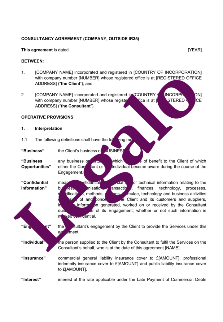 This is a guide to our “Outside IR35” Consultancy Agreement template. It is for use by a consultant that is to be taken on by a client where the consultant is: