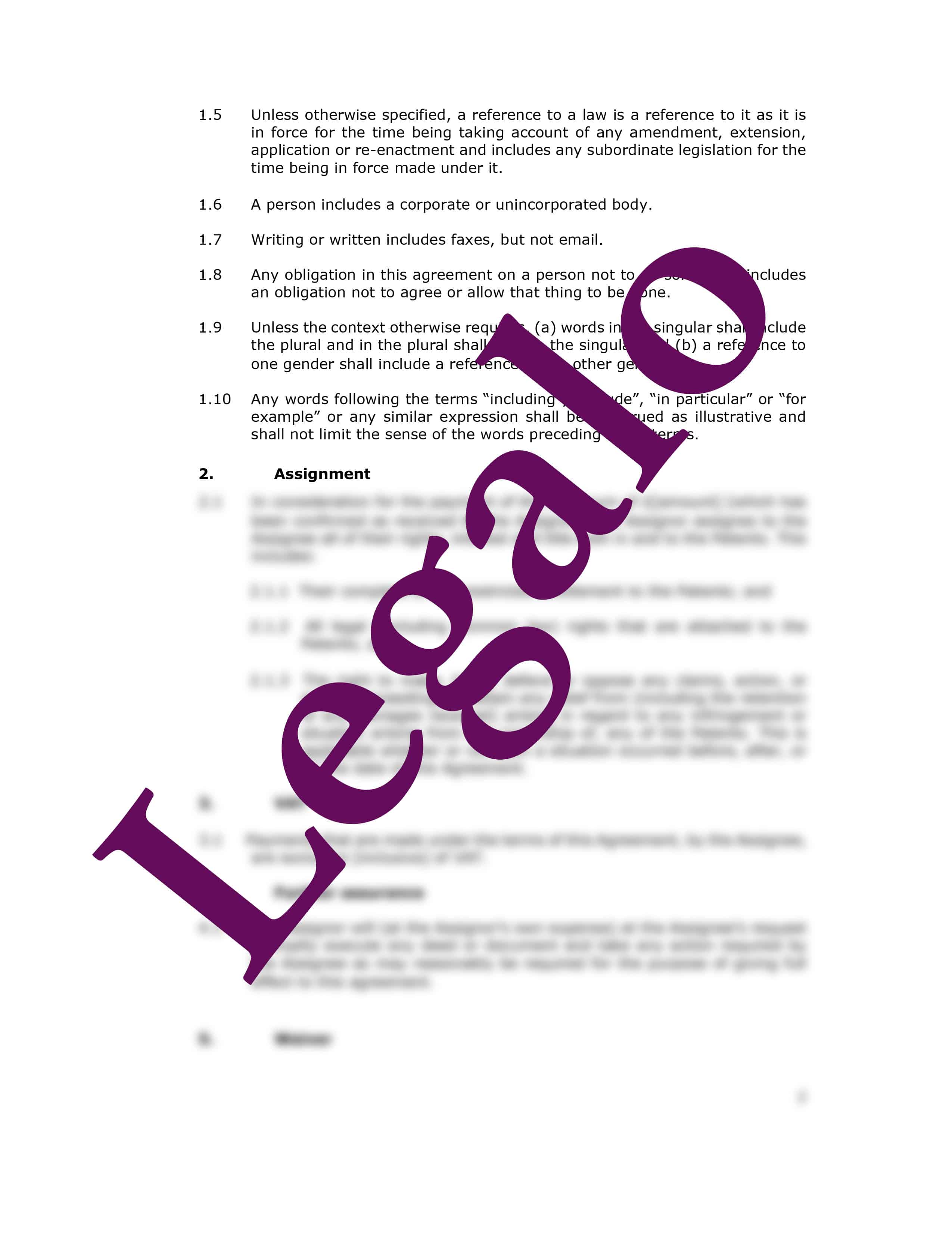 if you encounter any issues when completing the patent assignment template then do contact us. Our team will be happy to assist you with any questions that you have regarding the template. When you download the template, you will also get a set of detailed guidance notes. The notes take you through completing the agreement in a step-by-step way. You can expect the drafting time to take as little as 15 minutes, once you have read through the guide.