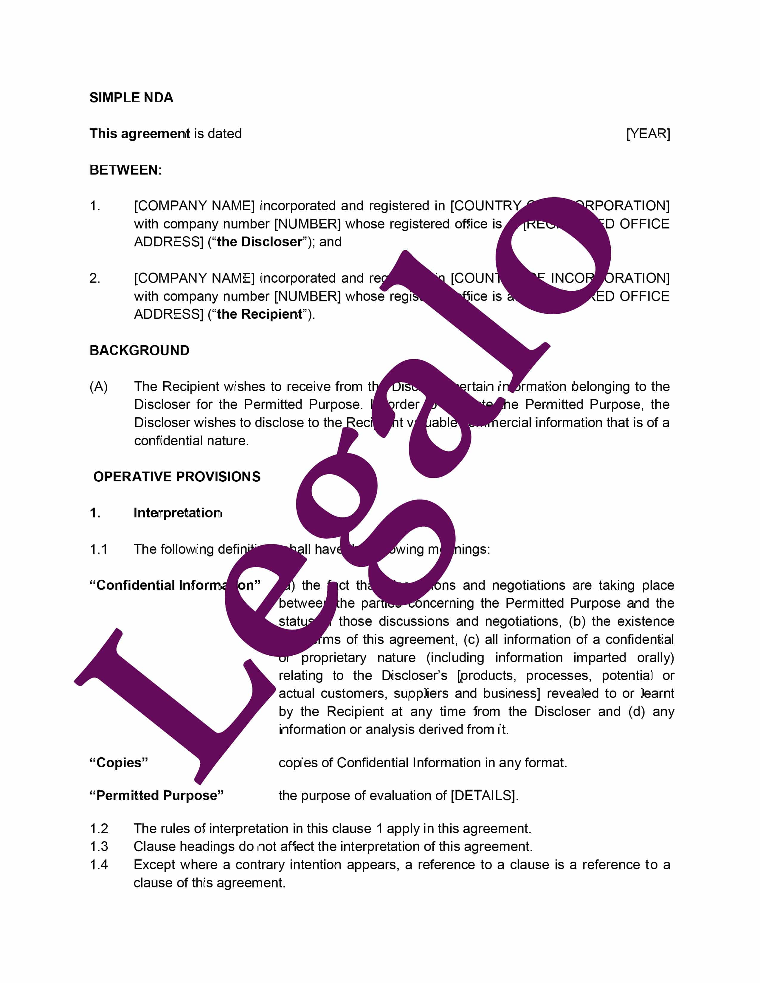 Using our Simple Non-Disclosure Agreement template
