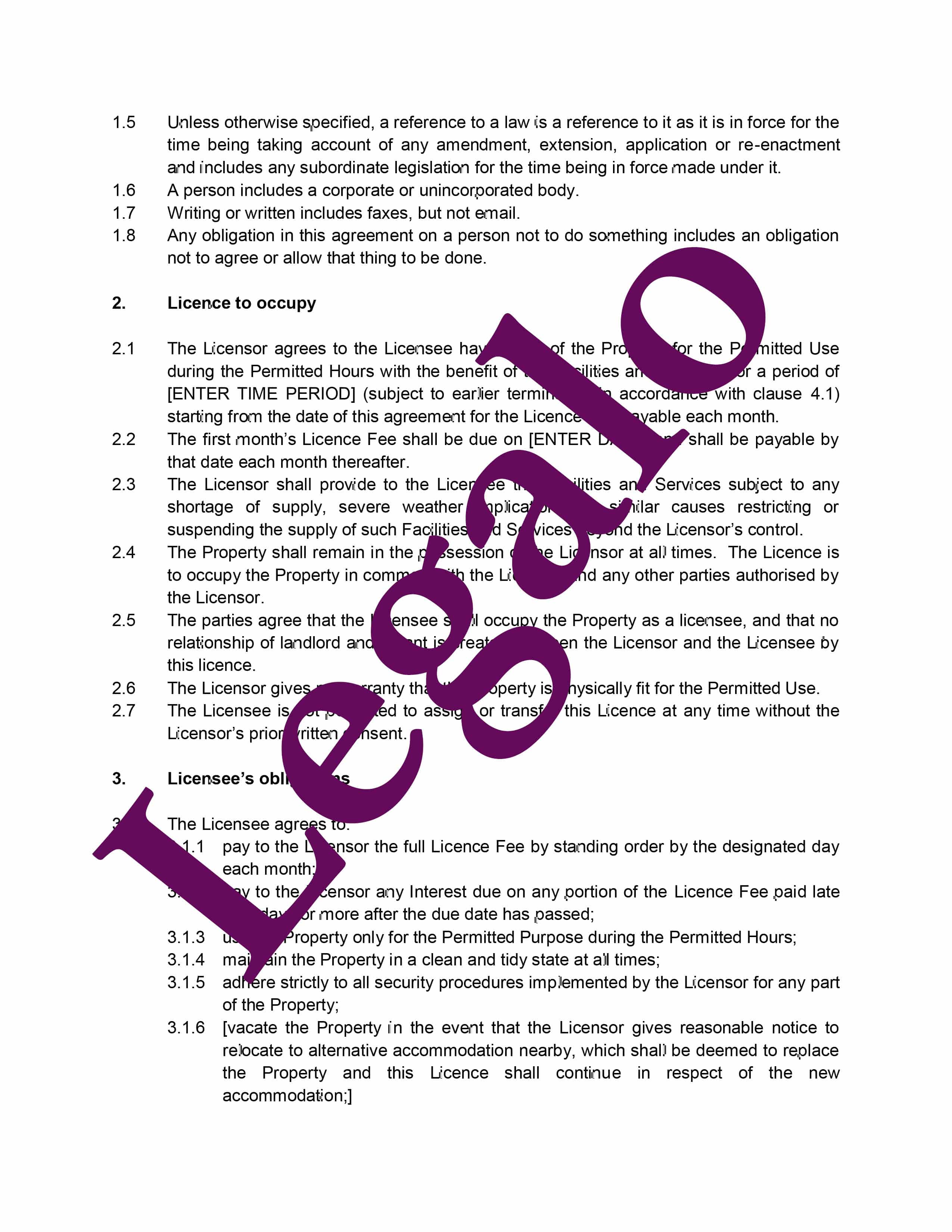 Our template is carefully drafted to establish a genuine licence arrangement when used appropriately for non-exclusive, flexible occupation.
