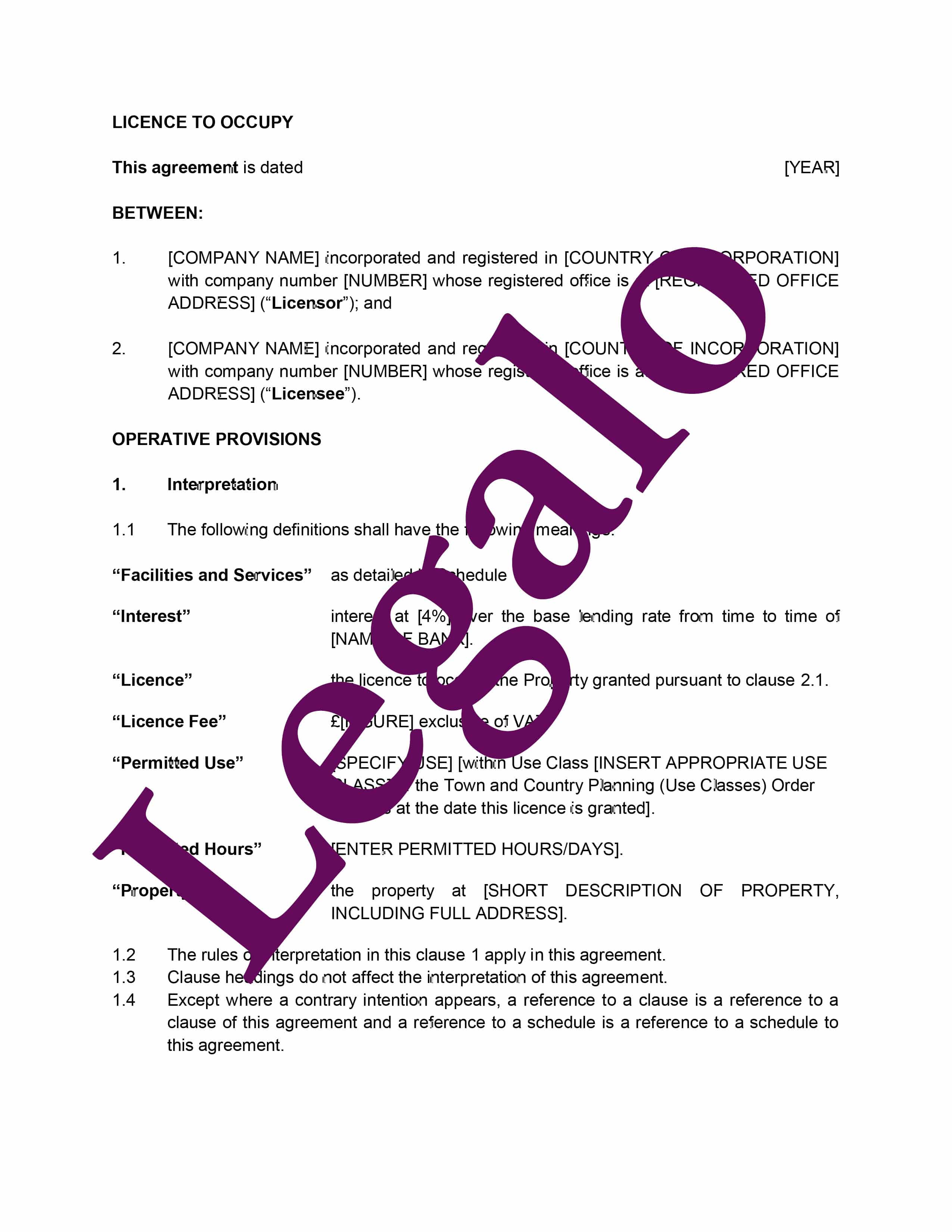 Our Template Licence to Occupy Commercial Premises: