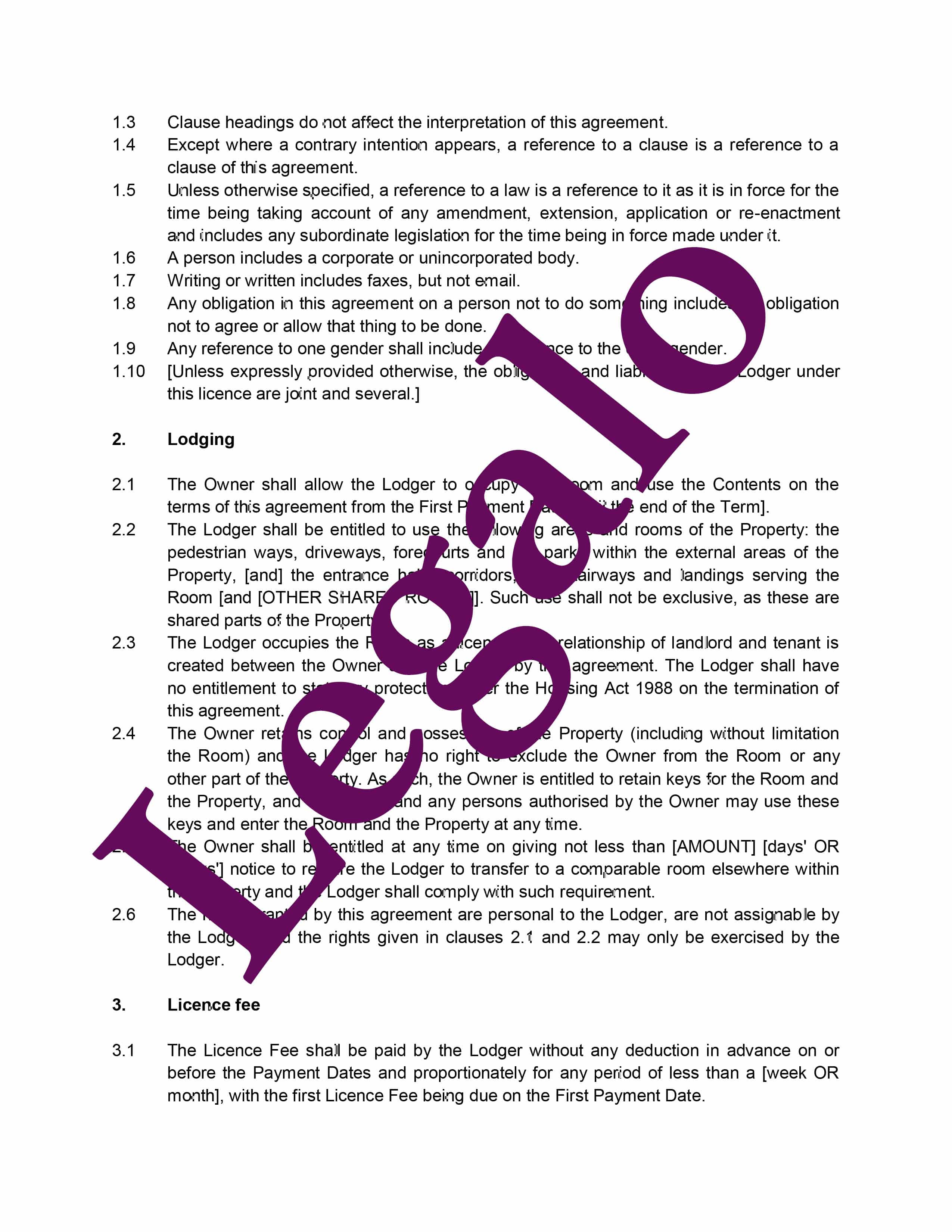 The majority of this agreement is the same as our general lodger agreement, as you might expect. For the guide to that template, please click here and then scroll down the page until you reach the guide section. The main differences with it are: