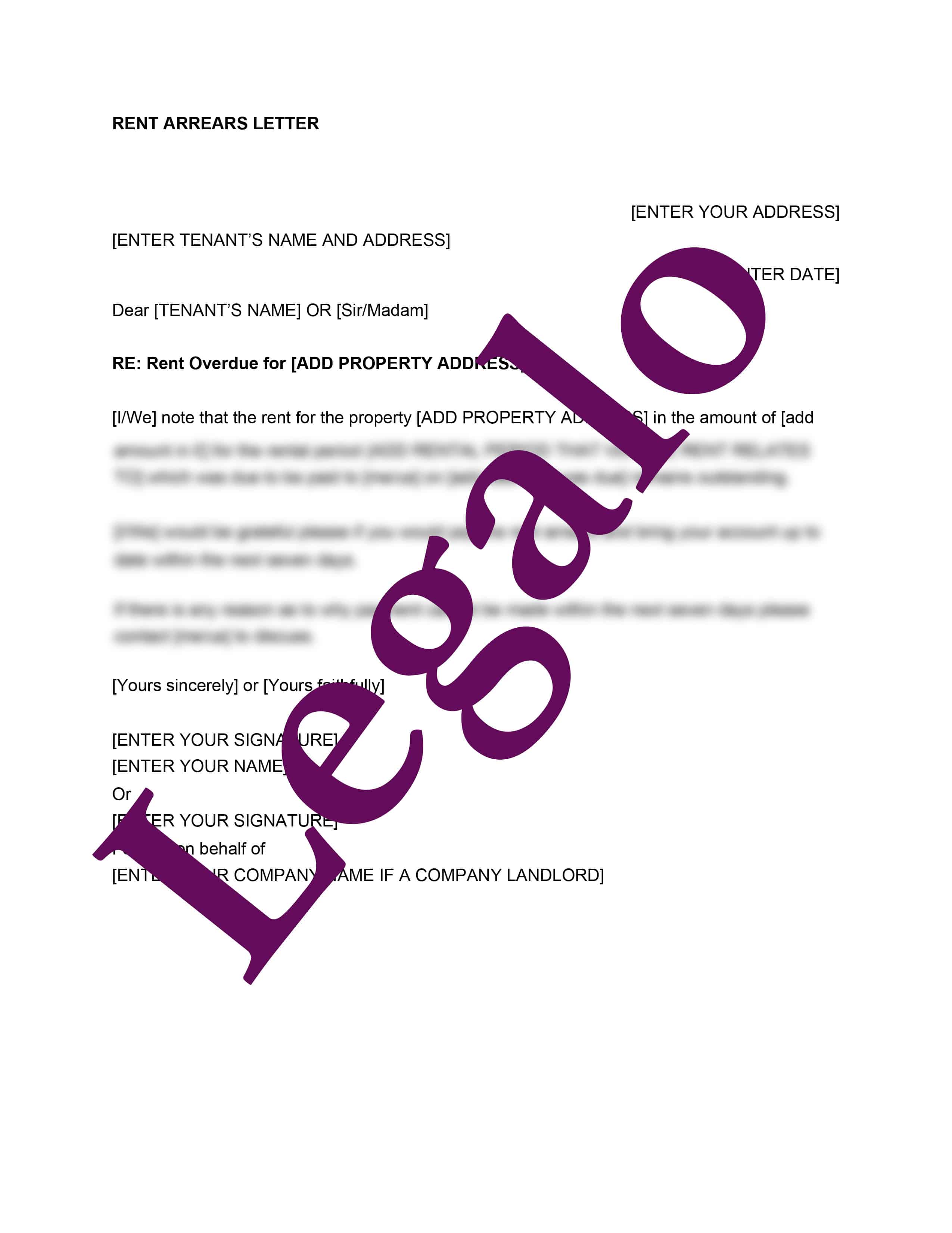 Our template has been drafted so that it acts as a reminder to the tenant that the rent is overdue and sets a requirement to bring the arrears up to date within no more than seven days.