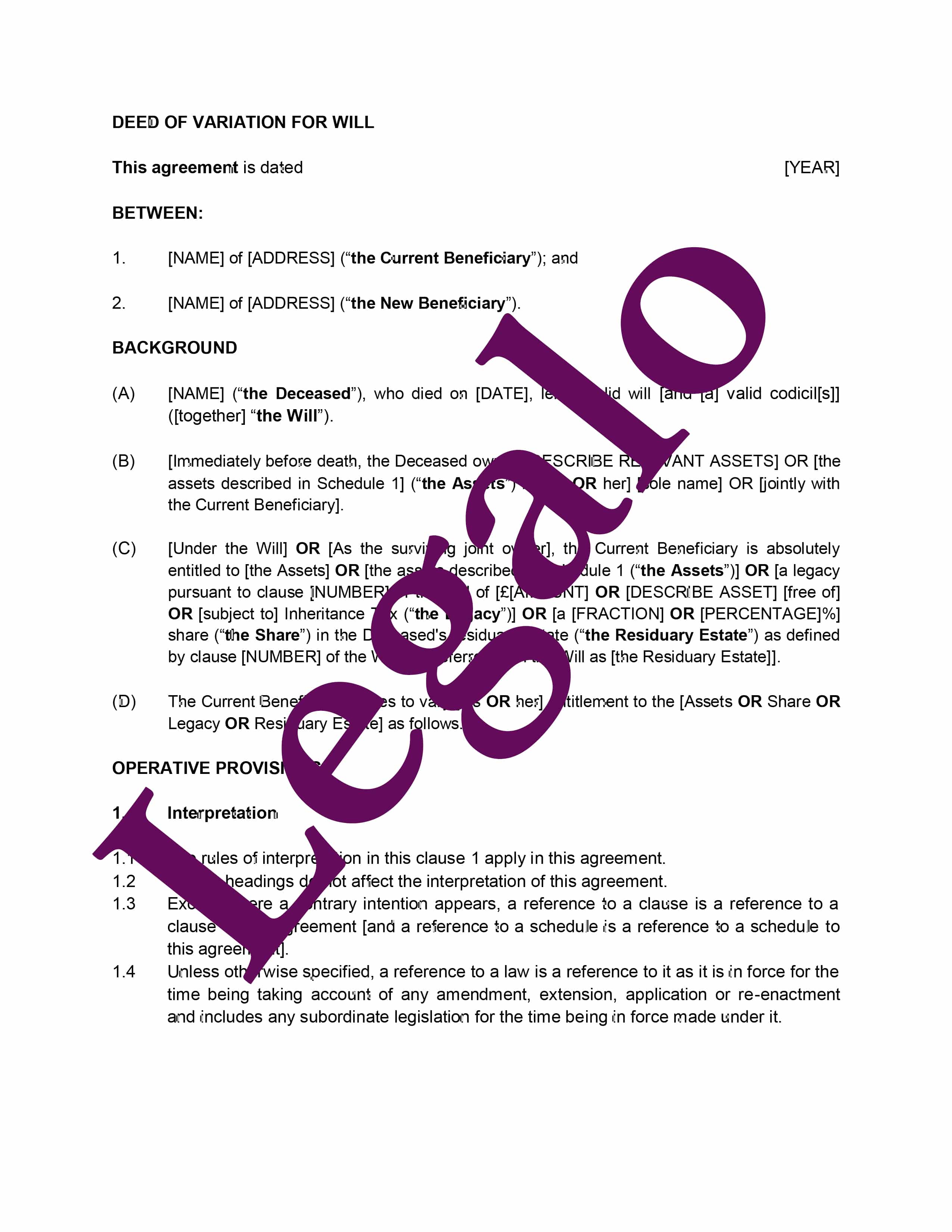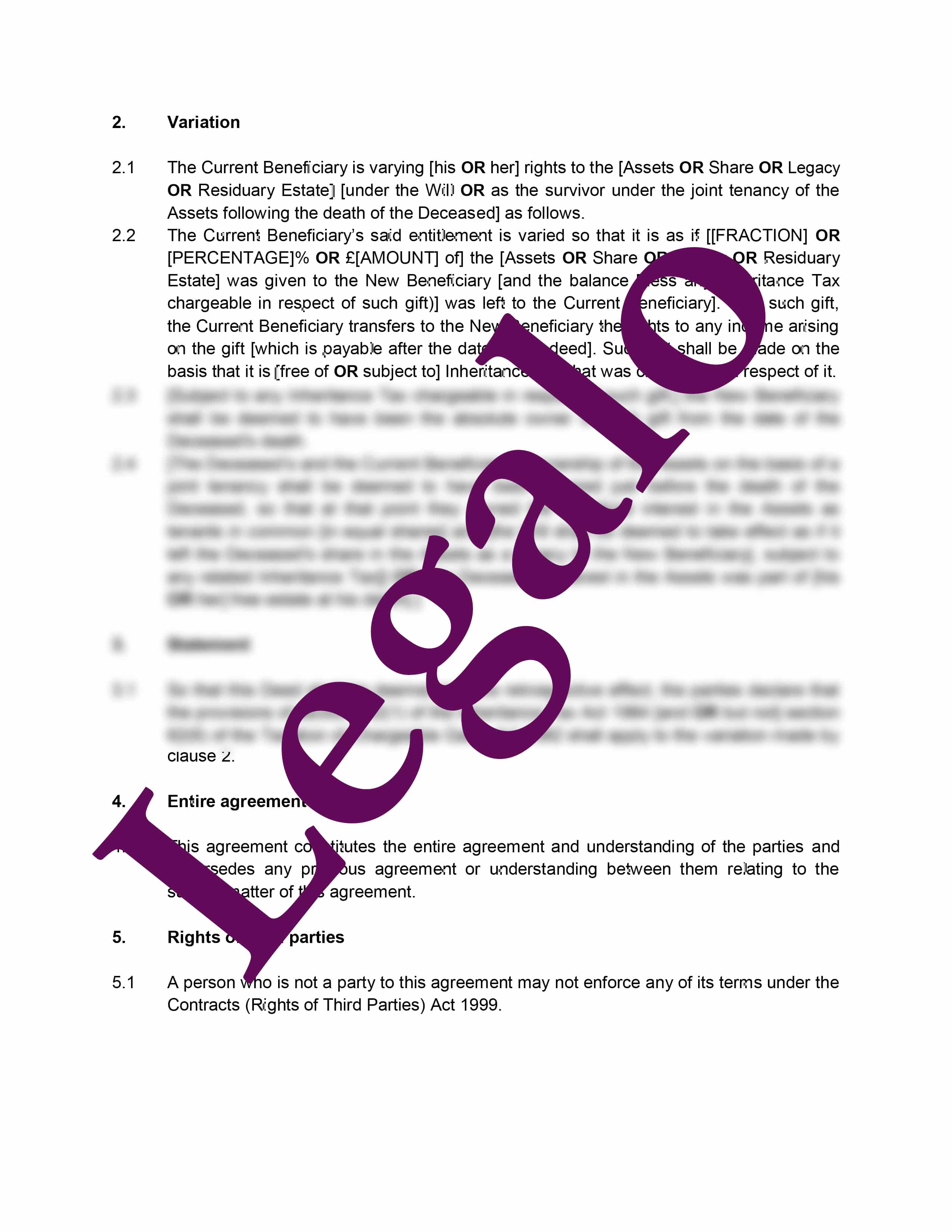 This is a very cost-effective way to go about completing the variation of who receives what from a deceased’s estate. A copy of the guidance notes are available here: guide to this deed of variation for will template.